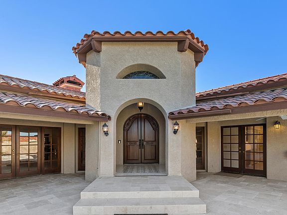 Welcome to Ironwood Heights, part of the Ironwood Country Club community! This home has the charm and elegance of Old Palm Springs creating a hacienda feel and lifestyle. The L shaped floor plan wraps around the large pool deck with incredible views of Eisenhower Mountain. Enjoy the sunrise and moonrise everyday. There are 2 primary suites on either side of the house with plenty of closet space; one of the primary bathrooms has been remodeled and is light and bright. The 3rd bedroom is cozy, has a fireplace and can be used as a den. The kitchen has been remodeled with stainless appliances, new cabinets, granite countertops and the large island is a great spot to be entertained by the home chef. Come see this house, and start enjoying the desert lifestyle! Ironwood Country Club is a private club with two 18-hole golf courses, fitness center, tennis and pickle ball courts, and a beautiful club house. Membership is by application, requires sponsorship and is separate from home ownership.