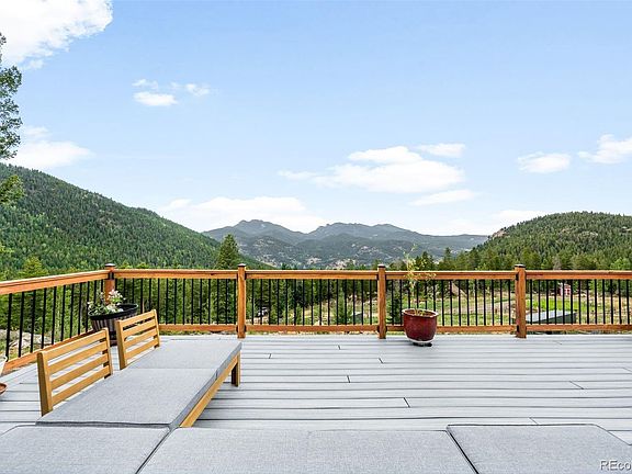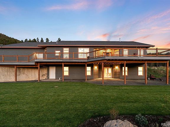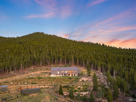 Embrace mountain living in this expansive and updated home on 36 acres with all the updates, amenities and internet connectivity of living right in town! The current owners have significantly updated this property, recent additions include: a huge 1,200 sqft composite deck to take advantage of the beautiful views and serene setting. New roads and surfaces as well as 4,300 sqft of flat lawn space (grass and plants under warranty). New pond with a stunning waterfall. Inside, the home is beautiful with a spacious chef’s kitchen complete with an island and a peninsula as well as a large dining area open to the outdoors with views over the pond out west. Tall and open living room with a gas fireplace. 3 spacious bedrooms on the main level as well as main level laundry (second laundry in basement). Oversized 3 car garage for all of your gear and toys! The primary suite has some of the best views in the house…start your day each morning waking up in this beautiful paradise. The full walkout basement was recently finished and is essentially brand new! So spacious and bright with numerous windows and doors to take you outside. There is a brand new full second kitchen (complete with a dishwasher and range) for guests or in-law / nanny’s quarters. 2 additional bedrooms (very spacious) as well as a dedicated fitness room. 2 large bathrooms with on-trend tile, heated flooring and walk-in showers. The media room is fantastic with an attached wine cellar. Plenty of additional storage. Fast fiber Internet (very rare for Golden Gate Canyon). The corrals are all set up for horses / livestock and chickens. This 36 acres feels much larger…siding to state park land where the current owners have never seen a person. The property is gated and the main road is also gated with a keypad…very secluded, secure and private. 30 minutes to Golden, Black Hawk or Nederland. Fulfill your mountain dream in this move-in ready luxury home today!