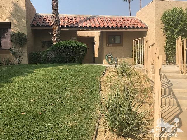 Prime south Palm Desert location. Well cared for 1 bed/2 bath unit at Corsican Villas where monthly HOA is only $395. Unit has been UPDATED with new porcelain tile flooring, granite counters, new cabinets and new stainless appliances. Large, spacious living room can easily accommodate an office area. Private patio is tiled and enclosed with lush landscaping (it's perfect for your BBQ, pets and relaxing with a good book. Washer and dryer are located in the single car garage. Unit is TURNKEY FURNISHED with Tommy Bahama furniture. Community features 4 pools, 2 spas, clubhouse and lighted tennis courts. Grounds are park-like. Great Location: Entry gate is on Portola just a mile or two from El Paseo, the desert's most exclusive street for fabulous restaurants, retail, art galleries, cafe's and shopping. Corsican Villas is located very close to The Living Desert (which is 1/2 Zoo and 1/2 Botanical gardens). Great hiking trails are close by.