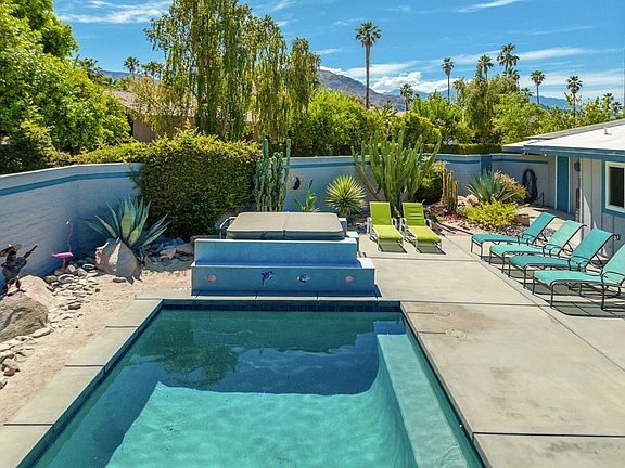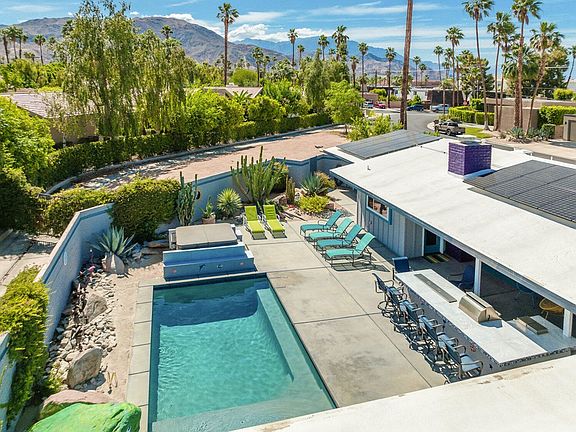 This beautiful home is truly a mid-century classic. Designed by William Bray, Architect. Built in 1956 the home was known as ''The Hospitality House'', an informal gathering place for builders and architects. Featuring an open concept kitchen, large combined living and dining area, bar, 3 bedroom suites with private baths, outdoor BBQ with fire pit, newly built salt water pool and spa with private, spacious outdoor area for relaxing and entertaining your guests. The home was updated in 2019 leaving the mid century detail as an important part of the home. Just steps from El Paseo offer world class shopping and restaurants. No HOA's. This home has an extensive and successful rental history.