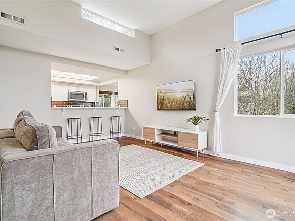 Stunning Cascade views await in this 2-bed, 1.75-bath Downtown Redmond condo. Relax on your private balcony with beautiful views or enjoy the open living area featuring built-in A/C and a wood-burning fireplace. The kitchen boasts a walk-in pantry, breakfast nook with built in storage, under cabinet lighting and stainless appliances! Retreat to the primary suite with a walk-in closet and en-suite bath. Modern perks include smart home features and 2 parking spots, and ample guest parking plus storage! Enjoy community amenities including a pool and hot tub. Ideally located within walking distance to the heart of Downtown Redmond and just minutes to Microsoft HQ!