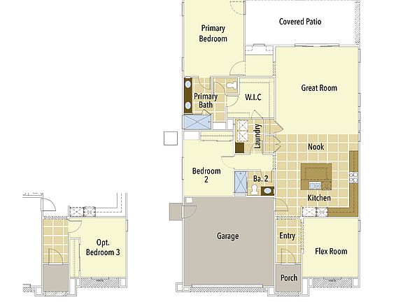 Congratulations! Now is the perfect time to embrace the fabulous benefits of living in this incredible 55+ gated community. Indulge in a resort-style lifestyle that offers an array of amenities designed exclusively for your enjoyment.This beautiful single-story home boasts an impressive 1,864 sqft of open living space. With 2 bedrooms, 2 baths, a dining room, a great room, and a 2-car garage, this home provides both elegance and functionality.Prepare to be delighted by the gourmet kitchen, enhanced with high-quality Samsung appliances that will surpass your expectations. From cooking delectable meals to entertaining guests, this kitchen is designed to inspire your culinary adventures.Throughout the home, you'll find the exceptional features of CrestWood Communities. Revel in the up to 10-foot ceilings that create a sense of spaciousness and grandeur. The kitchen showcases Quartz countertops with a stylish 6-inch backsplash, complemented by Samsung® appliances. The inclusion of a tankless water heater ensures convenience and energy efficiency.For surprisingly low HOA information, please consult our knowledgeable New Home Specialist, who will provide you with all the details you need