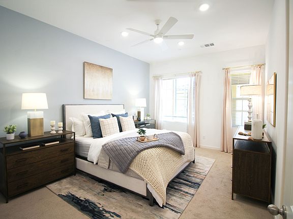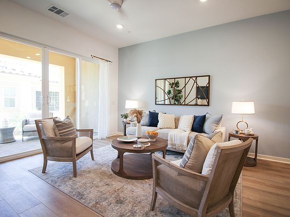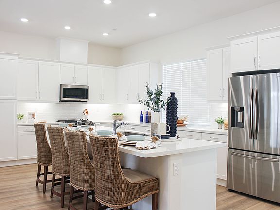 Now's your chance to own a model home! Congratulations. Now is the time to enjoy all the fabulous benefits of living in this Amazing 55+ gated community! This single story home features 1,553 sqft of open living space with 2 bedrooms, 2 baths, dining room, great room & a 2 car-garage. The gourmet kitchen with plenty of cabinet space has a large island with upgraded countertops. Included CrestWood Communities features are seen throughout, ceilings that soar up to 10 feet high, Quartz counter-tops with 6 inch backsplash at kitchen, Samsung® appliances, tankless water heater, and much more.