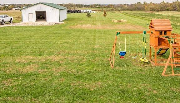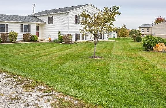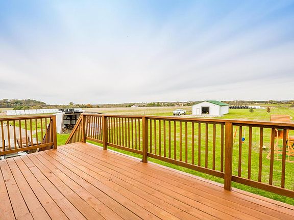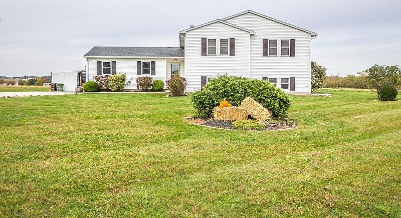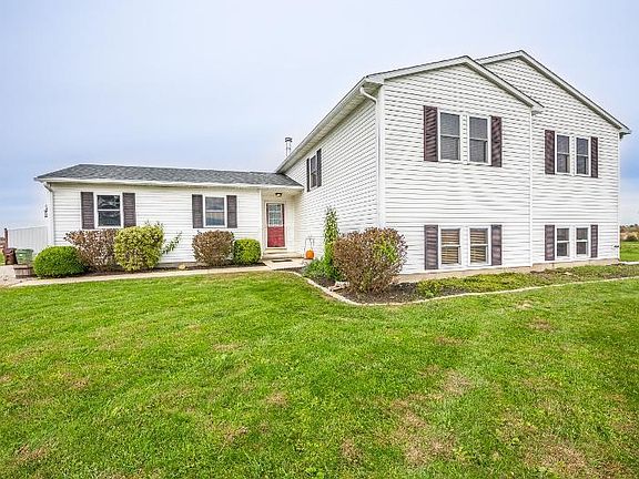 Country Living on 1.5 acre lot with 30 x 36 Pole Barn with separate electric panel, concrete floor and 9' x 10' door. Home features 2 car side load garage, 3 bedrooms and 2 baths with space on entry level for a half bath to possibly be added. Open kitchen and eating area with newer stainless steel appliances and kitchen island that connects to raised deck allowing you to view the country land for miles. Owners suite has walk in closet and private bath. Finished lower level has built in surround sound.