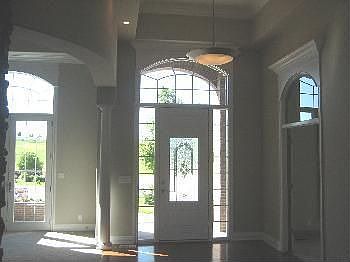 California inspired walk-out ranch on a cul-de-sac overlooking the Players Club. Courtyard entry opens to majestic 2 sided floor to ceiling stone fireplace separating the DR & LR. 10'-14' ceilings. Amazing maple floors, granite & stainless steel gourmet kitchen w/fireplace, 4 season room, theater room, spacious family room w/wet bar, high-end wiring package, wrap around Trex deck, & 4th garage in LL. House nestled around mature trees for extra privacy, but still great view of the course.