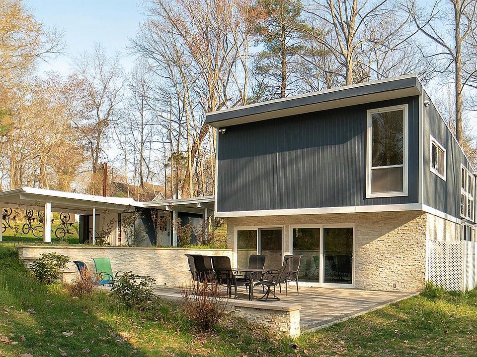 Once in a lifetime, rare architectural gem, believed to be designed by Charles Goodman, set on a sylvan, private lot is now available in Highland Maryland. Recently renovated down to the frame and the foundation including an open plan kitchen with Euro style cabinetry and plentiful granite counter tops with custom waterfall style corners, double full size ovens, separate prep sinks, replacement windows and sliding doors, all new baths with vessel sinks, in-floor heating system in the kitchen area and downstairs bathroom as well as the separate office, house wired for FiOS internet and TV, silver maple flooring in the foyer and upstairs, stacked stone fireplace, walls of windows, marble master bath, Redwood cedar siding, remote laser lights around the large/tall glass doors, under the stair case, under the cabinet lighting and the toe kicks, every room features individual energy efficient mini-split HVAC units and LED dimmable lights. Attached by the breezeway is a multipurpose room for office, studio, guest suite it's up to you. Step outside to find a cozy stone patio, outdoor shower and extra laundry, pre-plumbed outdoor kitchen, 200 Amp electric service, office and carport are on a separate sub-panel ready for expansion, plenty of storage in the double carport. Just move in and enjoy!