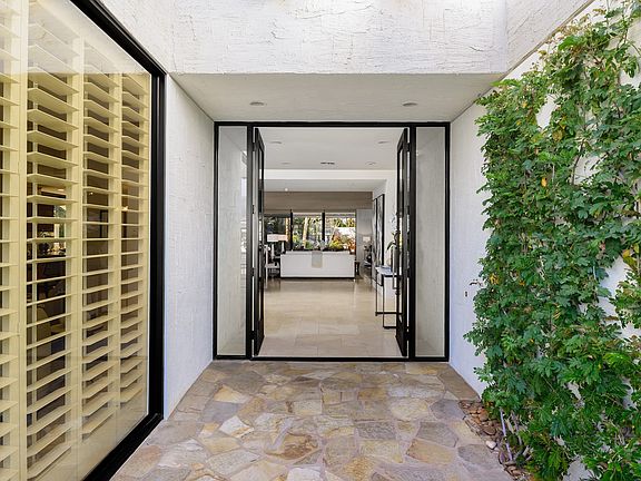 Gorgeous and timeless custom Contemporary home situated in Ironwood Heights, South Palm Desert, with all the amenities of Ironwood Country Club. Clean architectural lines, large spaces, wood-lined ceilings and walls of glass just begin to describe this beautiful home. Inside and outside become one, a wall of glass separates a large open living and dining room with custom granite fireplace and a covered patio, pool and spa, lush gardens and multiple sun/shade sitting areas. The spacious master suite with custom fabricated stone fireplace also shares direct pool and rear yard access. Back inside, a cozy family room with fireplace and wet-bar opens to the large cook's kitchen with center island and plenty of cabinetry. Adjacent to the kitchen is a sitting area with built-in desk with beautiful garden and tranquil water feature view. There are two spacious guest suites with walk-in closets. You will love the style, comfort and open space feel this beautiful home offers. Attached two-car garage plus golf cart garage around back.