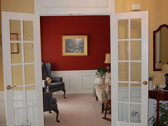 Extremely well maintained one story two bedroom two full bath Wittman model with full front porch and stone accents. Living room with gas fireplace, and skylight tunnel for added light. Custom built sunroom. Lovely paver patio with automatic awnings, professional landscaping, and irrigation system.