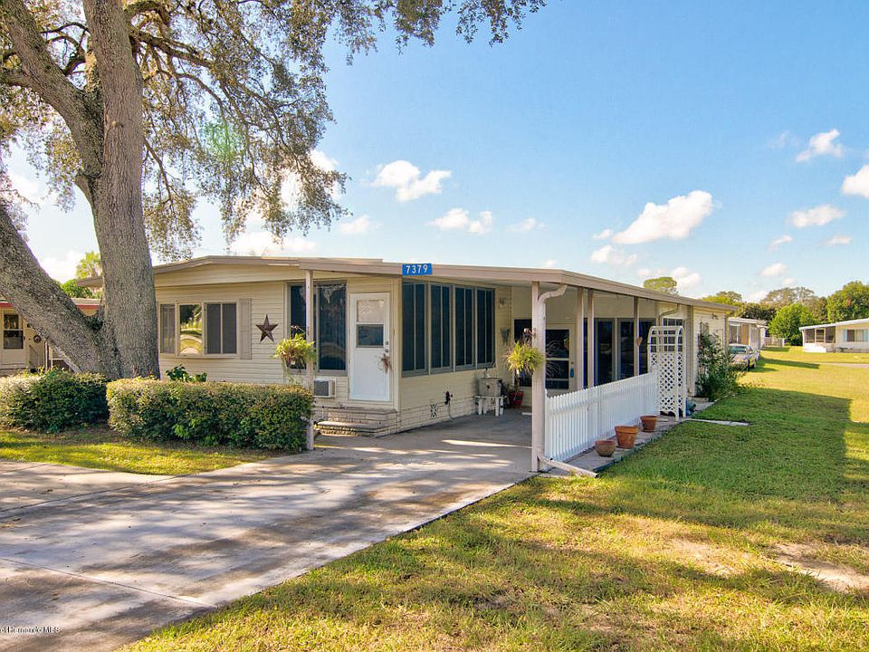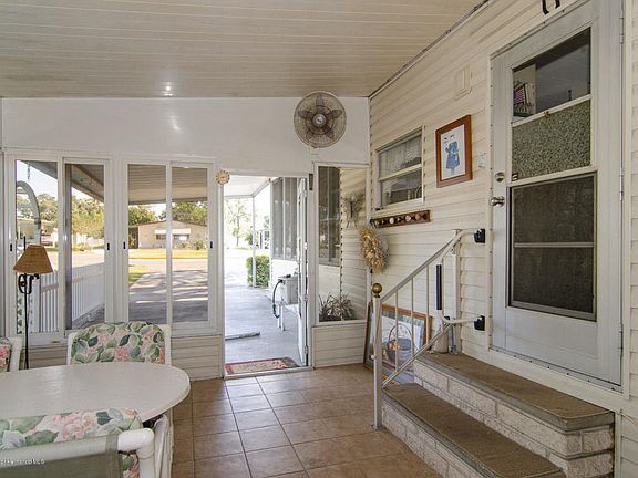 DON'T MISS this LIGHT & BRIGHT 2/2 home on a LARGE CORNER LOT. This home have much to offer with 2 ACRYLIC-ENCLOSED FLORIDA ROOMS (One is tiled!), wood laminate floors, CUSTOM TILE SHOWERS. Metal roof. Vinyl Siding. Circular driveway for extra parking. Partially furnished. Located in popular 55+ community where you own your own land. Community amenities include tennis, heated pool, horseshoes, bocce, community center, pickle ball and more. Located near major medical facilities, shopping and restaurants.