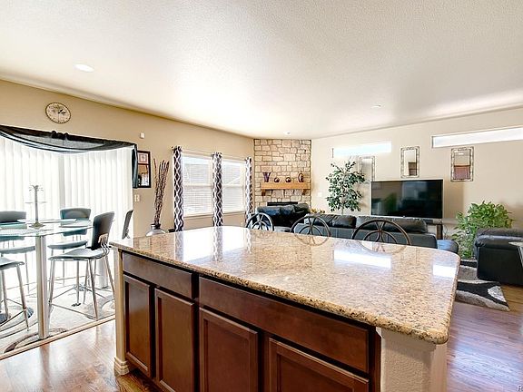 Stunning Ranch Style Home * In Banning Lewis Ranch * Light & bright open fl. pl * Boasts 3300 sq.ft. w/ 4Bd, 3Bth, 3 Car Garage, & upgraded * Eat in Kitchen w/ sstl appl., over the range micro, granite counters, cabinets w/crown molding, wood fl., & island * LR w/ gas f/p & w/o * Formal DR w/ wood fl. * M.Bd w/ bay window & adjoining 5 pc. M.Bth w/ walk-in closet * Bsmnt incl. lg. FR/Rec. Room w/ wet bar * HOA incl. fitness center, clubhouse, swimming pool, miles of hiking trails, parks, trash removal, internet, & cable