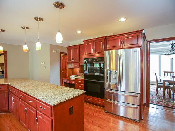 Great value and generous floor plan in this stately four bedroom, three and one-half bath brick walk-out Colonial in Wolf Creek. From the leaded-glass entry, a two-story foyer welcomes you and is well-designed with double coat closets and dramatic open stairway. Hardwood flooring, some with inlay, continues throughout the living spaces on the first floor. The dining room is located to the left and a den/office located to the right, each through fluted opening. Much natural light may be enjoyed through the replacement floor-to-ceiling crank windows on the front of the home. Accents that speak to sophistication include tray ceiling, dentil mold and pocket doors into the family room. The family room is where you will appreciate much family time with a fireplace and corner built-ins. There is also additional wall space for a variety of furniture configurations and TV placement should the built-in not be suitable for such. And then there's the kitchen! The island will be the meeting place for evenings in - it is over 12-feet in length, perfect for gathering as well as food prep. Lit by pendants, there is seating for four on the end and storage under as well. (Total, there are twelve base cabinets and eleven wall cabinets plus two pantries in this space.) Stainless steel double oven, LG French door refrigerator, LG dishwasher and smooth cooktop will make cooking a joy. In addition to highly functional, the kitchen is also beautiful and has a travertine backsplash with glass accents. Powder and laundry room (yes, on the first floor), finish the first floor. Upstairs you will find the master suite to the left and three additional bedrooms to the right - just enough separation but close enough if needed. For the clothes horse in you, the master closet possesses ten hanging areas plus shelves (most would consider it huge). And the luxurious slate master bath will pamper he and she. Double vanity with stack in the center, jetted tub, laundry chute, separate water closet and walk-in shower. Frameless glass encloses the shower where you will find hand-held sprayer, rainhead plus six additional options for getting clean. An all-white full bath with tub serves the other bedrooms on the second floor. Lower level adds close to an additional 1000 square feet of finished space. Teenager dream with updated full bath and room that could be used as bedroom (has closet) plus expansive living area with fireplace. Placement of this home is hillside so can relish your views from the front and also cherish your privacy from behind, perhaps having coffee on the covered deck. The backyard of this home is on a sloping lot and extends beyond the swing. Finally, enjoy the pool and tennis courts that are available through the Wolf Creek Clubhouse and HOA.