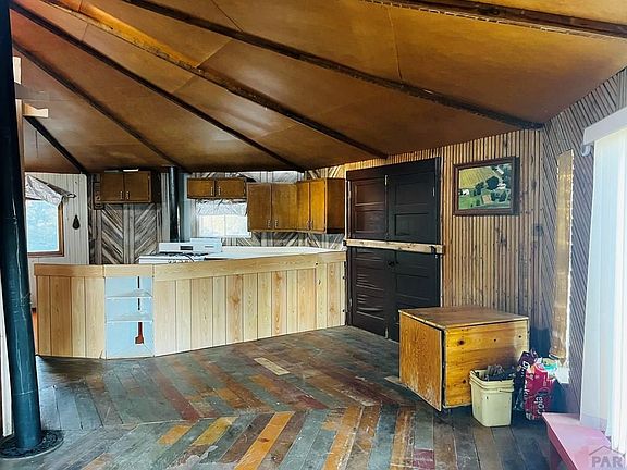 This Rural Colorado home on 5.019 acres is ready for you to put on the finishing touches. This property is located in the Sangre De Cristo Ranches area. Slight elevation and end of the road location offer great seclusion and mountain valley views! The property is set up as an off grid concept. An underground cistern is already in place which provides a hauled water source to the property, there is a pad and plumbing in place for a propane tank. Solar or generator power will need to be set up. The interior is two levels with open concept living and walk out/in access on both levels. The upper level has a rock fireplace and the lower level is plumbed for a wood stove. This would make a nice hunting camp or summer vacation spot! https://sangredecristohoa.org/