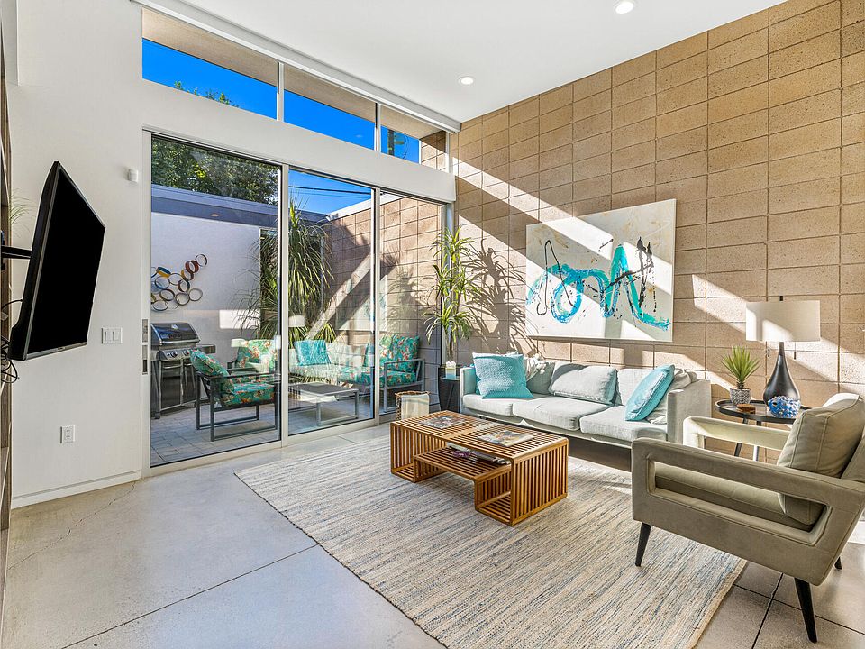 Sophisticated & Contemporary Architectural Condominium Off El Paseo In South Palm Desert. This SHORT TERM RENTAL APPROVED stylish 2 bedroom and 2 bathroom condo has been designed with concrete floors and walls of glass. O2 Architecture & Developer Absolute Partners have incorporated modern design and state of the art energy efficiency in all elements of the construction. The open layout provides comfortable living. This 4 unit enclave has a low HOA of $250 per month that does allow short term rentals. Call me today for an appointment to see this incredible South Palm Desert architectural masterpiece located one street away from the famed El Paseo dining and shopping experience.