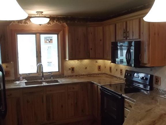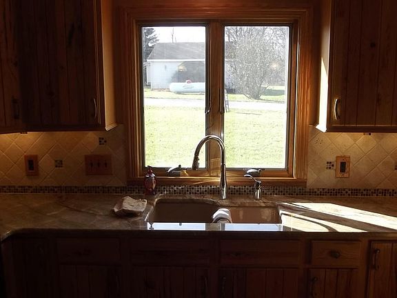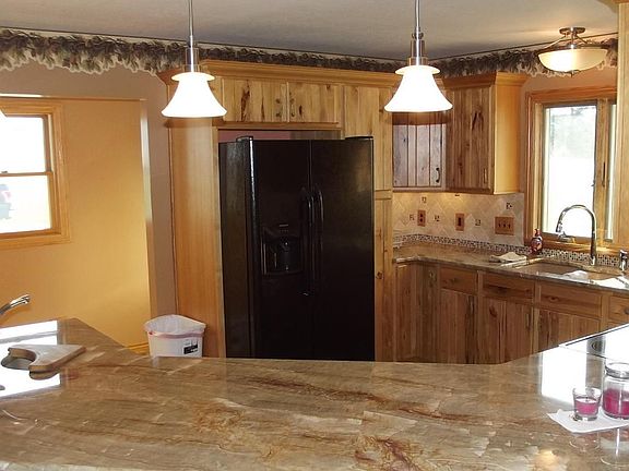 Gorgeous kitchen with granite countertops and hickory cabinets with ceramic back splash. hardwood floors, gas log fireplace, new windows, carpet and a bathroom with stone floors and ceramic walls with a glass shower. Simply put,,,this is an awesome ranch home with 70' on Bartholomew Lake. Everything has been done with quality and elegance in mind. This is a must see channel front home.