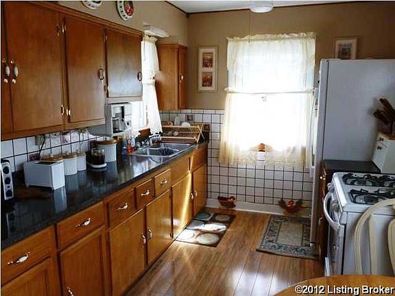 Adorable low maintenance house just off Southern Pkwy. Covered front porch with room for sitting, big patio behind the house! Nice sized rooms throughout, updated kitchen, replacement windows, easy care flooring! All appliances in the eat-in kitchen may remain plus the washer and dryer if needed! Bonus bedroom on the second floor with a family room in the basement including a bar area and full bath with whirlpool tub! Recent furnace makes this a more efficient home; the average LGE bill is only $112/month! Big flat back yard plus a one car detatched garage! Great value for this well cared for home - need some notice to show please!
