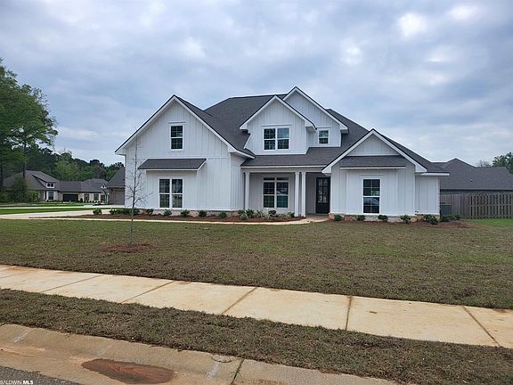 Currently under construction, in the beautiful Fox Hollow Subdivision. This Truland exclusive neighborhood has mature trees and is nestled just minutes away from all the conveniences that Fairhope has to offer. This is the Youngstown Plan, constructed with a wide assortment of upgrades and luxuries. This home is estimated to be completed in March/April of 2023. With five bedrooms and four full bathrooms, it is a rare find in Truland plans. Built to be spacious and accommodating by offering grand communal areas as well as large bedrooms with private baths. The kitchen is dazzling, with white quartz countertops and painted white cabinets. This kitchen is our split cooking option and will have a gas cooktop, and a built-in wall oven and microwave. This presents a cleaner, more luxurious look. The sink will be a white, farm sink with clean lines and a custom tile backsplash. Hardwood floors will run seamlessly throughout the home in the kitchen, family room, dining area and primary bedroom. The primary bedroom is well lit by natural light and features a trey ceiling. Attached is the primary bathroom with a soaking tub, large walk-in shower with frameless glass, and double vanities. It will come with up to a 6-zone irrigation system. The Smart Homes package includes wifi smart light switches for the kitchen, living area, and carriage lights on the garage, a smart wifi garage door opener, RING® doorbell, outdoor camera, hub, and smart thermostat. Truland Homes builds at the Gold Fortified Level and the home includes a full 1-year builder and PWSC warranty. Fox Hollow is a Fairhope Single Tax property. Call to see this home, today! All measurements are approximate and not guaranteed, buyer to verify.