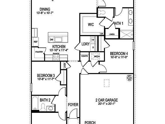 The appealing one-story home includes many contemporary features, and an open-concept design and 9' ceilings enhance the wonderful feel of this home. The kitchen includes a large island perfect for bar-style eating or entertaining, a walk-in pantry, and plenty of cabinets and counter space. The dining room and living room both overlook the covered porch, which is a great area for relaxing and dining al fresco. The large Bedroom One, located at the back of the home for privacy, can comfortably fit a king size bed, and includes an en suite bathroom with double vanity, big walk-in closet, and separate linen closet. Three other bedrooms share a second bathroom. The two-car garage connects to the front hallway where the laundry room and an extra storage closet are also located. Pictures, photographs, colors, features, and sizes are for illustration purposes only and will vary from the homes as built. More Home Features Include: All granite countertops, all kitchen appliances, gutters, blinds, walk in shower, covered back patio, and smart home system. This home will be complete mid October. Call listing agent for showing instructions.