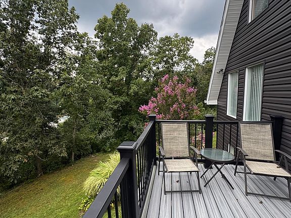 This Chalet on Ellington Run Court is your perfect place to relax and feel like you're on vacation!! Close quickly and enjoy the fall colors from your private deck overlooking the wooded lot. SO much work has been done here in the past 2 years. New addition added a foyer; primary suite; and front deck; and at the same time the existing bathroom was totally renovated including the plumbing, fixtures, and lighting. Large dressing/laundry room has space for a day bed or baby bed for the most special guests. Kitchen has newer custom cabinets, counters, lighting and stainless appliances. You'll love taking away the chill of a winter's night in front of the beautiful fireplace which commands the living room as well as making warmth and a gorgeous view to be enjoyed from the 2nd bedroom loft. Floor coverings are new throughout the home and the partial basement which walks out to the yard has just had professional waterproofing and a sump pump added which has battery backup for no worries during a storm. There is a washer/dryer hook-up in the basement as well as on the main floor. Both sets of French doors were replaced within the past 2 years. Newer washer and dryer will convey to new owner. There is a storage building and small garage. This property would be an excellent location for a part-time residence or an Airbnb. Call today and let's take a look!