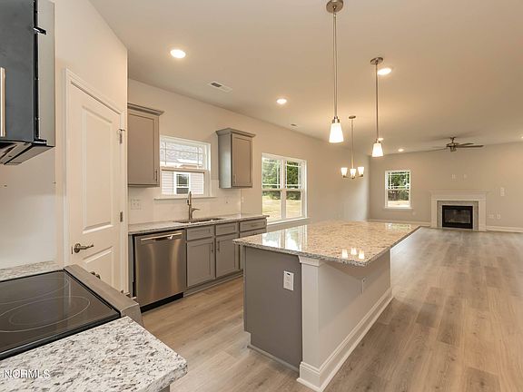 This 3030sqft floor plan is designed for entertaining with an open concept kitchen, dining, and living area leading onto the covered back porch. The backyard backs into a wooded tree line for extra privacy and is perfect for peaceful morning coffee moments. The downstairs primary bedroom features a soaking tub and separate tiled walk-in shower. Throughout the main living areas is resilient Revwood flooring. In the kitchen you will find granite countertops, subway tile backsplash as well as crown moulding and wainscotting in the breakfast area. Downstairs also has a powder bath for guests. Upstairs you'll discover 4 spacious rooms as well as TWO loft areas with lots of natural light. Projected finish time: August 2024. Photos are representative and of the same floorplan in another community.