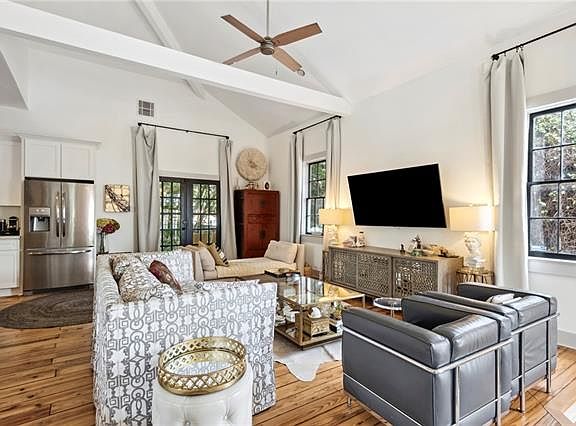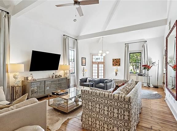Live large in this luxury single-family home on a double corner lot in the desirable Irish Channel neighborhood! Step inside and experience the spectacular vaulted ceilings and harmonious flow of living, kitchen, and dining. This home was thoughtfully renovated maintaining the original hardwood pine floors and stained-glass windows paired with upgraded designer finishes throughout. The modern kitchen features stainless steel appliances, quartz countertops, and ample storage. The downstairs primary suite includes a spacious bedroom, marble bathroom, and walk-in closet. Upstairs you'll find two additional bedrooms, a bathroom, and more closet space. Enjoy living on a corner lot with two side porches and a large backyard ready for relaxing or entertaining. Just 3 short blocks to famous Magazine St. grocery store, bars, restaurants, and shopping! Small dogs considered on case by case basis with non-refundable pet fee. Unfurnished lease; furniture in photos not included.