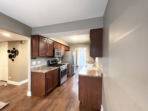 Available immediately, completely remodeled end unit with a basement in a great neighborhood ~ updated kitchen with eat-in area, stainless steel appliances ~ brand new floors, carpeting, paint, new fixtures, and all new trim and millwork throughout ~ gorgeous sun-drenched family room with vaulted ceilings, formal dining room, and private patio ~ spacious finished basement, tons of storage & much more. close to parks, schools & shopping.