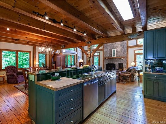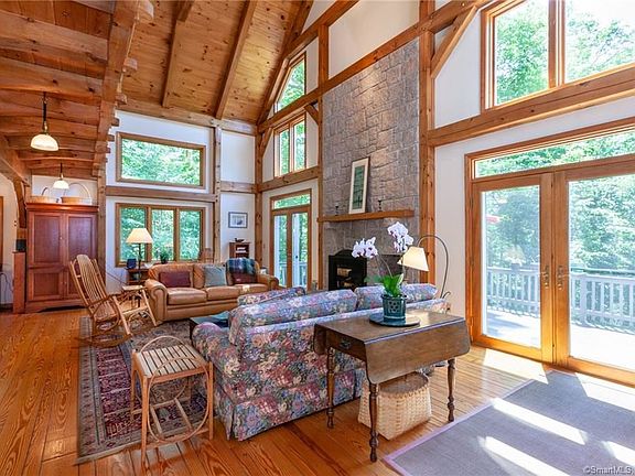 Nantucket style custom hand crafted Post & Beam home with beautiful architectural details. Open floor plan with lots of windows to enjoy the beauty of all four seasons. Great room has Stony Creek granite fireplace with vented gas insert. Heated sunroom off of the great room makes a great second living area for meals and entertaining. Island separates the open kitchen/dining area with wood burning stove and is adjacent to the great room. Kitchen is gourmet chef's delight with 4 burner Viking gas stove. Mudroom with shower off foyer next to the garage, convenient after a day at the beach. Beautiful wide staircase in great room leads to second level with bedrooms and second floor balcony overlooking private wooded lot. Stone wall lines the driveway as you get close to the house with landscaping. Additional room in garage area for workshop or exercise room with 220 ele service. Vegetable garden in backyard with critter fencing. Shed on property for storing firewood.Solar (owned) are used for solar hot water heater.