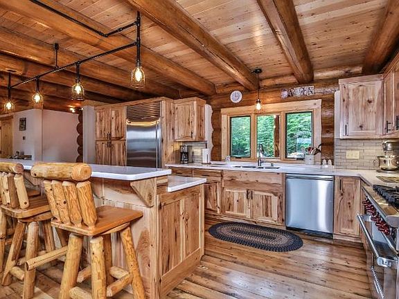 - Exterior Finish: Stone, Log/Full, Wood Shingle