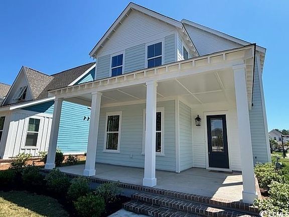 Builder is a Popular Regional Builder in North Carolina/South Carolina markets for over 30 years building Low Country/Coastal Style New Homes. Always paying attention to architectural details. Quality and Customer service is tops with this builder! Building in SayeBrook...a new home community centrally located. SayeBrook is a master planned community near SayeBrook Shopping center, restaurants, 2 miles from ocean , near Market Common District, airport, and Murrells Inlet. This is the Banbury Plan with expanded primary suite on first floor, oversized laundry room with built-in, powder room, separate dining area, kitchen island, two spacious bedrooms, bath, and 15x 14 loft(bonus room) on second floor . You will love the 10 ft. ceilings on first floor, 9 ft. ceilings other remaining areas. Abundance of windows in this beautiful home. Five panel doors and craftsman trim throughout. Homesite sits on corner behind a small park setting, detached 2-car garage, space for outdoor living on side corner of home. Beautiful designer touches. Mohawk Engineered hardwood floors in first floor main living areas including primary bedroom, and upstairs loft, hardwood treads on stairs. , built-in bench with cubbies in laundry room. Tile floors in all baths and laundry. Spacious tiled walk-in shower in primary bath. Lovey kitchen -open plan with large island, natural gas cooktop with vented hood vent, wall oven and microwave. Timberlake Barnett Linen Painted Cabinets, large island for additional seating and food prepping., tile backsplash, Quartz countertops. window above kitchen sink, lots of windows throughout home allows bright natural light. Lawn sprinkler and security systems installed. Detached 2-car garage sq. ft. is not included in total sf. All measurements and sf. are estimated only and not guaranteed by builder. for accuracy , it is recommended a buyer measure. Pictures are used for illustrative purposes only and are of another Banbury that was built/sold Coastal, small-town charm within walking/golf cart distance to Sayebrook Town Center. You can also drive your golf cart to the Market Common district!! A natural gas community. Come tour our available homes.