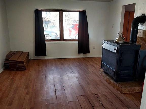 Cute house sits on a double lot with a privacy fence in back yard! Fresh interior paint, newer plumbing and hot water heater. New wood stove that is the main source of heat in the house. New jacuzzi tub in the bathroom, handicap accessible. Large back yard with so much potential to build a garage or a deck and landscape if desired! Newer sidewalk in front.