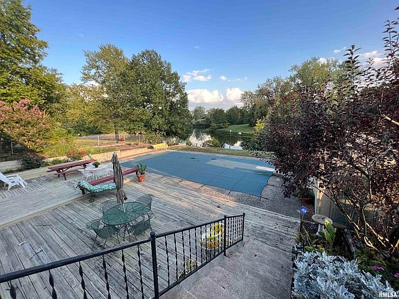 All brick Mid Century Ranch with a walk out basement. This iconic home is located on a beautiful strip cut waterfront lot adjoining the DuQuoin State Fairgrounds. The view from the walk out basement overlooks the elegant inground swimming pole and the lake. Original hardwood floors with a historic entertainment area in the basement complete with a bar from a local establishment.