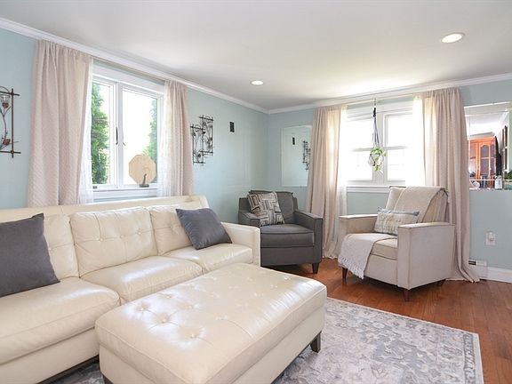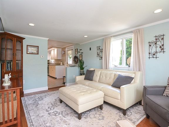 This stunning Raynham home is everything but "Cookie Cutter" , it offers all the style and charm you could possibly want, with all the updates you need!!! This 4 bedroom 2 full bath home has been thoughtfully updated an maintained. The first floor offers an updated kitchen with a spacious stone counter top, a dining room that is perfect for entertaining, a living room with surround sound, a bright family room with skylight and slider to the deck, a spacious bedroom (currently used as a home gym) not to mention a stunning full bath and cute laundry room. On the second floor you have a huge primary bedroom with attached full bath and two additional well sized bedrooms. Outside you have a newly landscaped front lawn, newer driveway, a fully fenced back yard with tons of room for play and a huge 12X24 shed. The heating system is just five years old and the roof was new in 2023. This house truly screams HOME!!