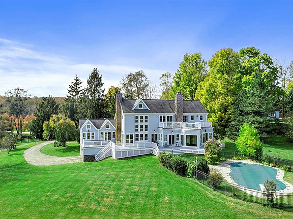 Cherry Hill Farm is a picturesque horse farm on 21 acres with incomparable distant views. The compound includes a custom built 4BR, 5BTH contemporary with state of the art kitchen, jacuzzi rm, inground pool, and a 1 BR cottage. The equestrian facility includes a 6 stall 12'x 12'stall barn with heated wash stall, Nelson waterers, heated tack rm, 2 stall run-in shed, 7 large grass paddocks, 3 medical paddocks, 120'x 220' outdoor riding ring. Your own personal Grand Prix field. Equipment shed. This is a working horse farm as well as a gentleman's estate!