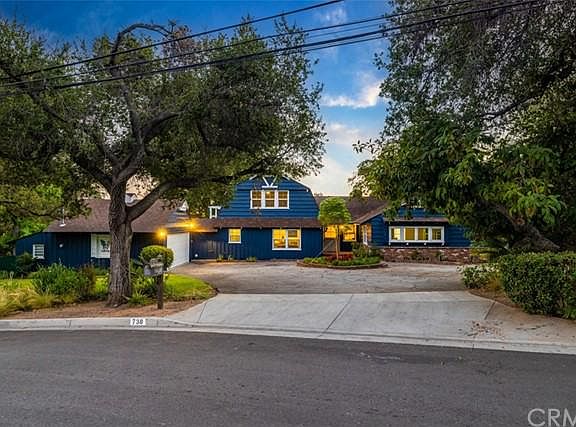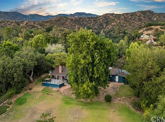COMPLETELY REMODELED HOME ON A 3/4 ACRE CITY LIGHTS VIEW LOT. Situated in the hills of Monrovia, this home sits on a tree lined street with a grass front lawn set back from the street with a circular driveway. The front elevation offers brick facade and a brick front porch that leads to a wide front entry door. The entryway opens to the formal living room that features a white brick fireplace with wood mantel, exposed beam ceilings with recessed lighting, and view windows. The great room offers a new kitchen with custom wood cabinetry, quartz countertops, subway tiled backsplash, and stainless steel appliances. The island overlooks the living areas and offers pendant lighting, countertop seating, and a space for a breakfast nook. The open space offers a family room sitting area, dining room, and a door to the back view deck. There is also a half bathroom off the kitchen and an oversized laundry room that could be used as an office as there are also laundry hook-ups and a laundry tub in the attached two car garage. The primary bedroom is conveniently located on the main level featuring luxury vinyl plank (LVP) floors, a walk-in closet, ceiling fan, and an ensuite bathroom. The primary bathroom offers white shaker cabinetry, quartz countertops, and a custom tiled shower with a frameless glass enclosure. Upstairs there are two large bedrooms each with mini-split heating and A/C for ultimate comfort, ceiling fans, walk-in closets, and access to a view deck with panoramic views. The two rooms share a custom remodeled hall bathroom with a Jang soaking tub. Behind the garage is a converted tack room with garage access that can be used as a workshop or for storage.The massive backyard starts with a concrete view patio just off the great room. Sit and relax in the almost new hot tub while enjoying the panoramic views of the Los Angeles skyline, treetops, and city lights. The yard is full of grass, mature trees, multiple fruit trees including apple, citrus, and avocado, a concrete slab with basketball hoop, garden area, and a fenced dog run. Additional upgrades include: Newer HVAC, 225amp electrical panel with feed to garage for 220 power, two tankless water heaters, a recirculation pump, a water softener, and upgraded plumbing and drainage.