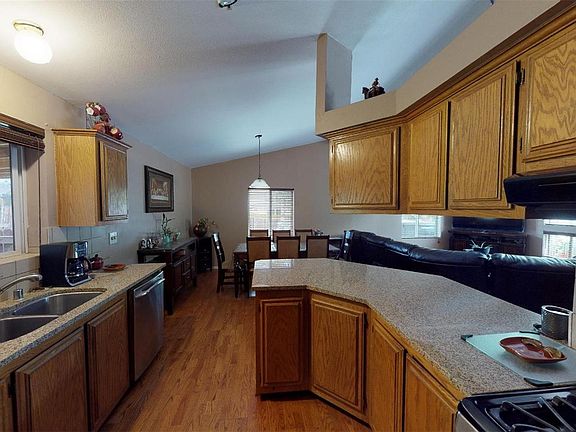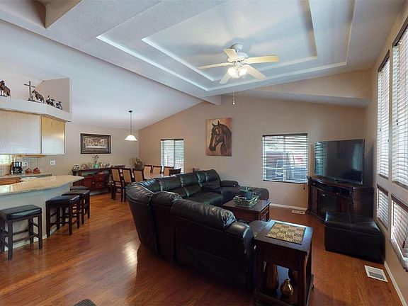Welcome Home! This beautiful home has been updates throughout the property. It has vaulted ceilings, 3 rooms, 2 full bathrooms & no HOA. It sits on a .41 acre lot that backs up to the mountain. The exterior of the house has stucco finishes with a large circular driveway which gives room for plenty of parking! The property is fenced all around, perfect for your furry pets. The front of the house has a large spacious deck and the back has a large covered porch with plenty of space for your exterior furniture. The kitchen has stainless steel appliances & updated granite countertops. The large master room has vaulted ceilings with its' own private 4 piece bathroom. The living room has big windows to allow plenty of sunlight in. The house has both hardwood floors and carpet (carpet 2 years old). There is also a shed on the property, perfect for extra storage. Hurry, call us today to schedule a showing!