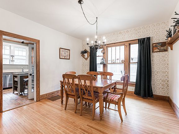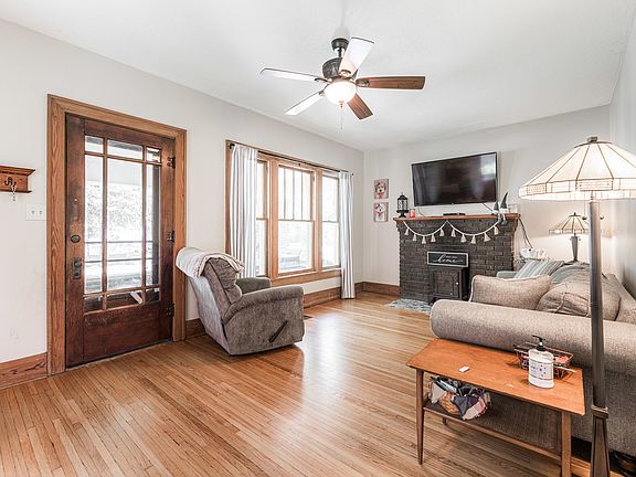 You will absolutely FALL IN LOVE with the charm and character of this lovely brick bungalow from the time you step foot on the open porch and understand the expression, "You had me at Hello!" The design of this home is functional and open, making for one level, EASY LIVING but the aesthetic is what will speak to your heart. Warm and inviting features like hardwood floors, natural woodwork, and a brick fireplace greet you upon entering, with a quaint window seat and full wall of built-in shelving. 9' volume ceilings and large windows throughout create a light airy feeling and provide lots of natural light. Spacious formal dining room is at the heart of the home and could be used as additional lounging or office space, depending on your needs. Your eyes will be drawn to the wood shiplap ceiling in the lovely kitchen and is completed with appliances, built-in shelving and the "must have" window above the sink! French door leads to side entry and unfinished basement. Down the hallway are 2 bedrooms and a full bath with pedestal sink, ceramic tile and a linen closet for all your storage needs. Outside you'll find a deep, fenced backyard with paver patio and off-street parking. Feel confident with recent IMPORTANT updates (less than 2 years new!): 4 New Windows, Central Air, Furnace & Dishwasher. Enjoy the beauty of an established neighborhood and the convenience of nearby parks, shopping, golf, downtown and easy access to I-88. Affordable AND Adorable!