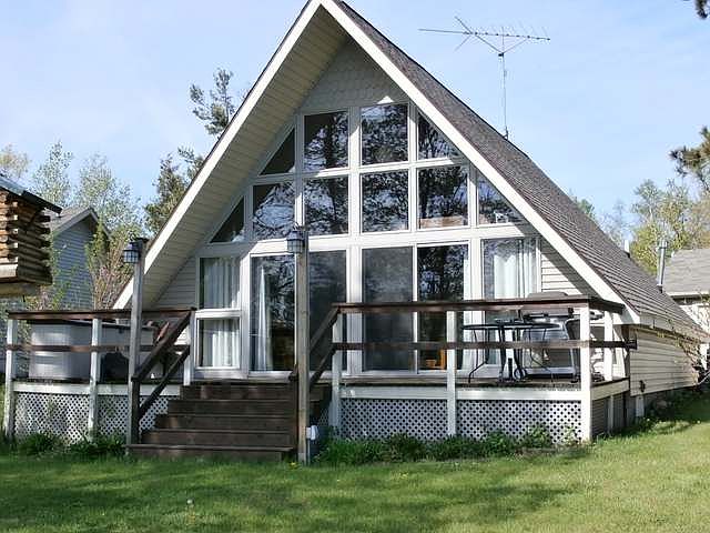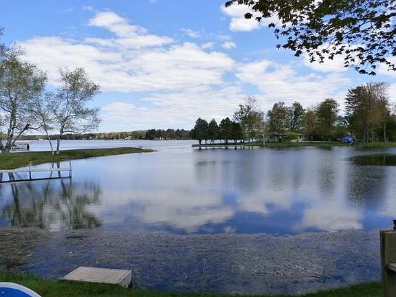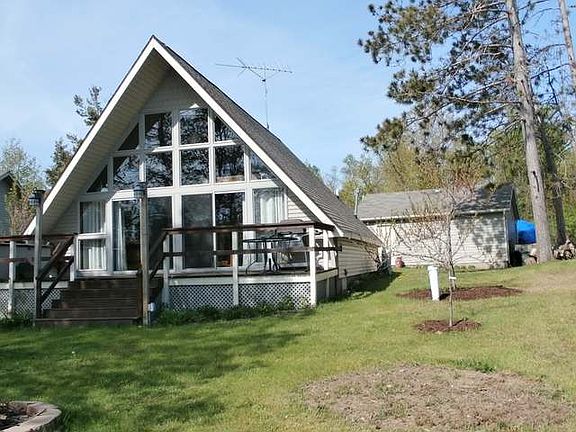 Great Lakefront A-Frame on beautiful Wiggins Lake. Great views from the waters edge. There are 2 bedrooms and a bath on the main floor plus a huge loft above (14x20). The huge windows showcase the lake and offer great light.The living and dining rooms overlook the lake. The kitchen is well equipped with recent updates. The utility/foyer offers a great entrance to the home. The bay frontage allows safety from activity on the all sports lake while still having great panoramic views. The property itself offers very nice landscaping including several fruit trees, the 2 car garage for storing the toys! This home is move in ready and tastefully decorated and offers recent updates which include kitchen, bath, roof, siding, windows and high efficiency furnace. This neat lakefront is ready for the new owners and also includes a dock, riding mower, aluminum boat and a canoe! See it today so you can enjoy the summer.Call for your private showing.