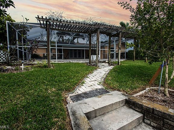 This beautiful Gulf access home is a 3 bedroom 2 bathroom pool home that features Italian tile, a large under roof custom tongue and groove ceiling Lanai, leading to the large beautiful screened in pool. The 7000 lb Boat lift is waiting raise your boat. Spacious kitchen open to the Family Room with French doors to the covered lanai. Oversized lot that extends 1/2 way down the canal end cap (house is not on end cap). Property is blessed with a variety of Palm trees and fruit trees including Mango, Cherry, Jackfruit, avocado, Fig , grapes on an arbor, Macadamia, and Bananas. Oversized one car garage. Most of the windows are impact resistant. 2023 roof.