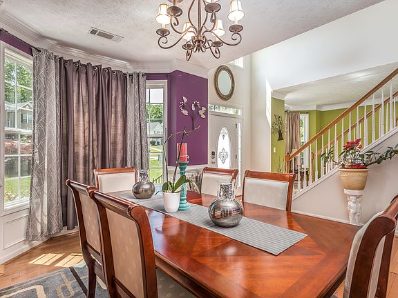 This beautiful brick front home has it all! Formal sitting room & stunning dining room. Kitchen features stone backsplash, granite counters, ss appl's & eat-in b'fast room. Step down to spacious sunken Family Room w/FP. Upstairs has 4 BRs & 2 BAs. Hall bath w/ new granite & tile floor. Spa-like master suite w/sitting room & renovated bath w/large tile floors & shower, granite counters, & whirlpool tub. Fin Basement w/Bar, Home Theater, Office or 5th BR, 3rd Full bath & Gym. Park-like backyard with a babbling stream.Largest lot in the subdivision. Feels like paradise!