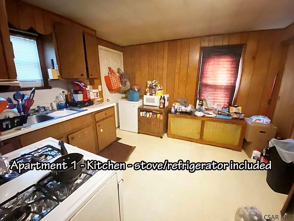2 Unit vinyl sided rental property. Apartment 1 has a covered front porch, living room, dining room & kitchen on the 1st level & 2 bedrooms and a bath on the 2nd level - rent is $600/month & includes utilities and garbage. Apartment 2 has a deck, kitchen and bath on the 1st level & a living room & bedroom on the 2nd level - rent is $475/month & includes utilities & garbage. Month to month leases. Off-street parking. Landlord takes care of mowing. 2 refrigerators & 2 ranges included. 24 hour minimum notice for showings.