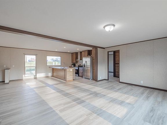 OWN YOUR OWN DIRT! Not lot rent here! Looking for a large home that is move in ready, with a partially fenced yard and close to a park, look no further! Spacious and ready to go, all appliances are staying. Four bedrooms and two bathrooms, two living areas, dining room, main floor laundry. Kitchen has new appliances, sink in is the peninsula and also extra seating. New laminate flooring in the main areas and bedrooms, this is a carpet free home. Primary bedroom is massive and has an ensuite with a separate tub and shower, double sinks, and private toilet. At the other end are 3 more bedrooms and a full bath. Smart layout almost like Jack and Jill style but can be private from sink area. There is so much room in here, it's about 2,100 SF in total. Outside the back yard is partially fenced for privacy. Concrete sidewalks wrap around the sides, and a parking area for off street vehicle accommodations. Agent related to sellers. Come and check out this home!