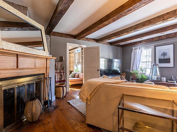 Located on the old stagecoach road 4 miles north of the Woodstock Village Green, this 1780's expanded post and beam cape is a wealth of antique charm, character and history. Lovingly stewarded over centuries honoring the period detail, including original hand hewn beams, wide plank floors, solid oak walls and five fireplaces. The spacious country kitchen has an impressive walk-in fireplace with a pellet stove. The spacious, attached, antique carriage barn with cathedral ceiling is the perfect "great room" to entertain large gatherings. Relax on the spectacular "summer porch" connecting the main house to the barn complete with a wood stove and heat lamps overlooking The Barnard Brook, which laces through the grounds providing a tranquil background sound, and a cool escape on a summer day. There is space for an apartment/office over the barn waiting for your vision. The property is an exceptional opportunity for a family compound, with a bucolic mix of level ground, verdant rolling hills, and wooded land with an impressive inventory of hardwoods and trails. Perfectly suited for horses, livestock, and so much more. There are ancient apple trees, mature lilacs, copious, established perennial beds that run along the brook. The property abuts The Appalachian Trail park to the north and east for hiking and recreation. Walking distance to S-Six for Skiing, Teago Store and PO, The Grange Theater and The Artistree. Being offered as is.