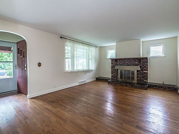 Cute as a button! This sweet bungalow will have you at hello! This home is conveniently located next to major roadways, shopping & offers many great updates to enjoy! An oversized front porch welcomes you as you enter the foyer. An updated oversized kitchen flows into the sprawling living room & is drenched with light from 2 large picture windows in both spaces. The kitchen enjoys new updates such as: LVT Flooring, fresh paint, stunning quartz counters w/ ceramic backsplash, deep sink & SS gas range. The kitchen flows perfectly into the living room, making it ideal for entertaining & also enjoying the fantastic wood burning fireplace! 2 spacious bedrooms allow for large furniture & share a main bath. Throughout the home enjoy gleaming hardwood flooring & updated electrical. The basement has a partially finished area which includes a large bar, sitting area w/paneled walls & wood stove (unknown condition), as well as a half bath. Basement laundry & separate storage area complete the lower level. The rear yard includes a shed, level yard full of gardens & perennials & is fully fenced. You won't want to miss out on this truly charming home!