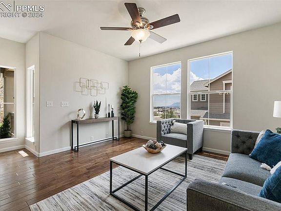 Immaculate End Unit Townhome with Mountain and Green Space Views! *** Two Primary Suites w/ Walk-In Closets and Attached Bathrooms *** Loft Space with Hickory Wood Floors and Mountain Views *** Hickory Hardwood Floors on Main Level, Stairs, and Loft *** 12x24 Tile Floors in Kitchen and Bathrooms *** Radiant Floor Heat in Primary Bathroom *** Smart Thermostat (Sensi) and Smart Electric Water Heater *** Reverse Osmosis Water System in Kitchen *** New Stainless Steel Appliances in 2023 - Bosch Dishwasher and Induction Range Top *** New White 3” Blinds *** New Interior Paint *** Upgraded Insulated Garage Door *** Storm Door *** Green Space View from Primary Suite *** Plenty of Adjacent Guest Parking *** Located Near Woodmoor Open Space *** Quick and Easy Access to I-25 *** Quick Move-In Available!