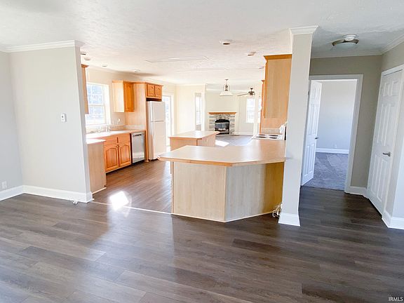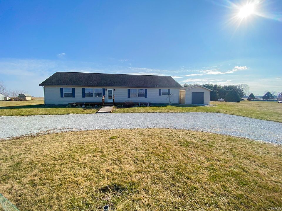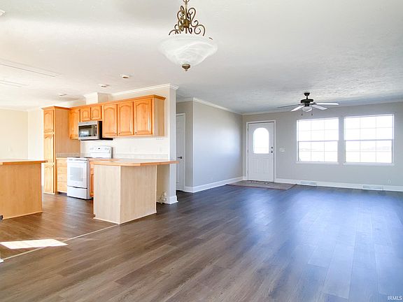 Welcome home to this wonderful open concept 3 bedroom 2 full bath home on a full acre. Large windows and open rooms allow the natural light in and add to the airy feel of this 2040 sq ft. ranch. Beautiful crown moulding throughout the home provides a special touch. Walls are drywall instead of traditional manufactured wall panels with strips. Luxury vinyl flooring with wide wood plank look is new throughout living spaces and kitchen, while new carpet has been installed in the bedrooms and closets. Both the entry and bathrooms feature attractive tile flooring. In addition to the large bedrooms, this home has a family room, front room, dining room and optional eat in kitchen area. Outside you find a detached garage, and a front and back deck perfect to enjoy the wonderful open country views. As a bonus, just off the patio doors, a small area of the acre lot is fenced in. Easy to show. You have to come see!!!!