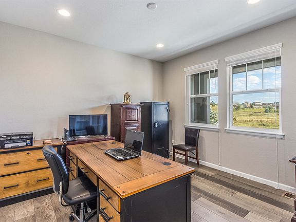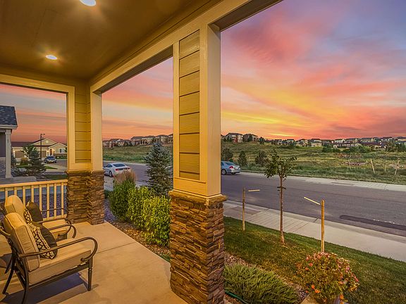 Incredibly beautiful, upgraded ranch-style home in the highly sought-after Cobblestone Ranch neighborhood! Enjoy your morning coffee and relax on the large covered front porch with gorgeous unobstructed views of open space. You'll feel right at home as you walk in the large entryway with impressive wood floors. The private office features built in shelving and french doors making it perfect for working or schooling from home. As you continue to the great room you'll love the open concept living room, dining room and kitchen. Gourmet kitchen includes oversized slab counters, neutral and modern backsplash, double oven, cooktop, ample pantry and upgraded stainless steel appliances. Enjoy entertaining in this incredible kitchen with a large island that opens to the great room featuring a beautiful gas fireplace. Sunsets will take your breath away as you enjoy being in the outdoors during all four seasons on this extra large covered patio. The yard is privacy-fenced and has plenty of room for kids and pets to enjoy. Laundry room with upper and lower cabinets as well as a sink. Owners suite offers a spa-like experience with a grand shower, dual sinks and spacious walk-in closet. This ranch boast 3 bedrooms and 2 and half bathrooms on the main floor as well as 2 bedrooms and full bathroom in the finished basement. The basement is huge! Along with 2 bedrooms, a full bathroom, and unfinished storage this basement also has a bar with a full-size refrigerator and sink next to the enormous flex space. Complete with a full 3-car garage, this house is a must see! Cobblestone Ranch is a quiet neighborhood with very little traffic and is surrounded by open space with walking and biking trails. Neighborhood pool, tennis courts, multiple playgrounds and more. Easy access to downtown Castle Rock, Parker, and I-25.