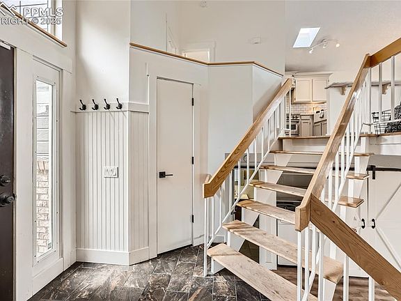 As you walk into the home, you are instantly greeted with a abundance of natural lighting. Up the stairs to the main living area, is the kitchen, the main bedroom and bathroom. The french doors off the living area that lead you out to the huge trex deck overlooking the city and the beautiful front range. The second bedroom and bathroom is downstairs, a 3rd bedroom (Non- confirming) could easily be added in the lower level. Just add the wall, open floor plan with vaulted ceilings, skylights, 2 fireplaces, one up and down stairs. Vinyl windows, on over a 1/4 acre of land in Academy school district 20.