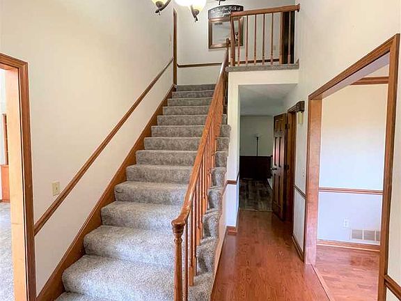 Hurry, you won't want to miss this custom built home that sits up on this serine hill just outside of Mt. Vernon! Enjoy this peaceful setting with great views with on over an acre of manicured lawn. This home was built by Dave Schroeder with quality as the standard. Once you enter the spacious foyer you will find a bright living room with cathedral ceiling and a floor to ceiling window with great views of the property. You will then find a large family room that has a full wall brick, vented gas fireplace for those cozy winter nights. That opens to the chef pleasing eat in kitchen with a bar, includes new stainless appliances and a breakfast room, to enjoy the views of the backyard with inviting deck. There is a very spacious formal dining room that connects to the kitchen for all your special occasions. Also on the main level you will also find a bonus/bedroom that connects to a laundry room/pantry with a full bathroom. There is a powder room for guests at the foyer. Upstairs you will find 2 generous sized guest bedrooms with a full bathroom in the hallway. At the end of the hall is the owners suite with a private bath. The basement has recently been finished and adds more space to the over 2400 sq ft house. The basement has a closet below the staircase which could be used as a storm shelter. You will also find a utility room, in the basement. Updates: New flooring throughout the home except original hardwood on main level and tile flooring in kitchen. New siding, brickwork on chimney, electrical, basement finished with a new window installed, plumbing updated, newer appliance. One year Home Buyers Warranty being offered by sellers, Immediate Possession! This is a Must See!