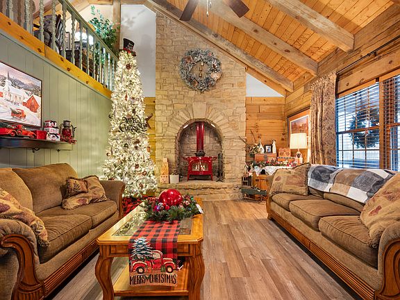 Striking stone fireplaceOpen loft areaCharming log home retreatVaulted ceilingsVintage wood-burning stove