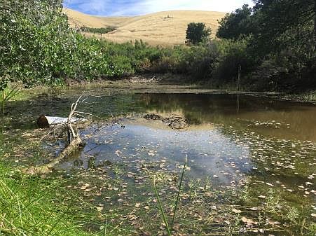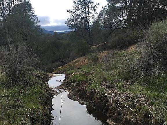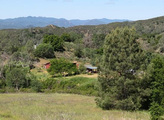 The 40 acres are abundant with game and native plants with spectacular vistas, rock outcroppings, secluded oak woodlands, and open grassy fields. In winter & spring, the land flows w/ creeks & waterfalls as well as a seasonal pond. Property owners also have access to two large shared-use community ponds a couple miles down the road. These ponds are spring-fed and provide year-round refuge for beavers, bass, and waterfowl, as well as a cooling reprieve for humans during summer! The property itself has several structures: a redwood barn, chicken coop, and a 200-square-foot one-room cabin with a rustic stone fireplace and hardwood floor. One well is 80 feet and outfitted with a solar panel (but pump needs to be installed). This well has a slow recharge rate and is thus best suited to wind or solar, so that water can trickle-feed into a tank in order to provide a consistent supply with a 1600-gallon metal water tank. Second well is 120 feet deep with a hand-pump.