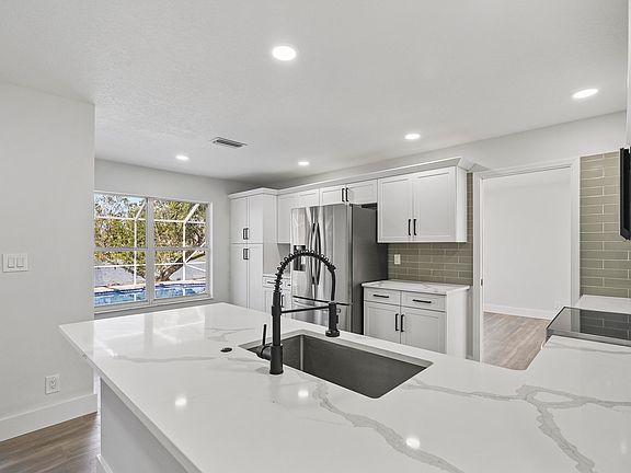 Completely renovated house - NEW roof; NEW a/c; NEW appliances; NEW water heater; NEW pool equipment; NEW garage door & opener, and the list goes on. New owners won't have to do a thing. Truly a must see! Outside you can enjoy the newly redone pool overlooking the lake in the screen enclosed patio area. This home is situated in highly desirable location with A-rated schools.All sizes approximate & not guaranteed.